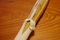柄革の縫い目が真っ直ぐになるよう仕組みます。