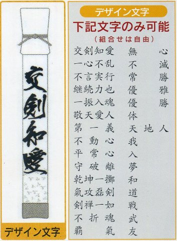 ○防具袋Bの位置、竹刀袋Aの位置には下記の文字に限り【デザイン文字】書体でお入れする事が出来ます。